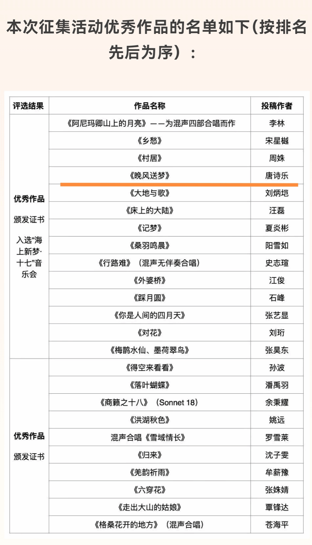 近日,公司best365中国官方网站青年教师唐诗乐博士创作的合唱作品《晚风送梦》获“海上新梦·十七”原创合唱作品征集活动“优秀作品”,并成功入选第41届上海之春国际音乐节展演名单,于2026年4月在保利上海城市剧院上演。 “海上...