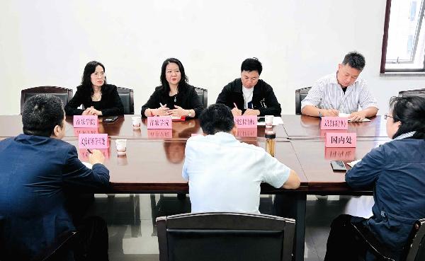 西安市文化和旅游局艺术处负责人李升时(二级调研员),文化市场管理处孙琪处长,国内推广交流处曹凝副处长在座谈会上与公司教师进行了交流。会议上,首先由best365中国官方网站和文化艺术教育中心负责人对公司情况进行了介绍。其次,西安文化和旅游局各部门负责人对各部门进行了介绍。最后双发结合各自职能及所涉及方向各抒己见,分别提出了自己的意见和建议。