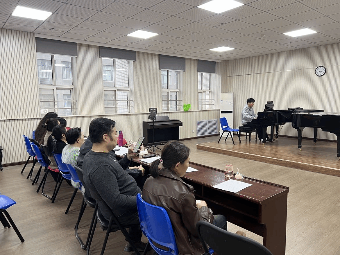 钢琴会课是多位专家与员工同时面对面的一种演奏指导,是钢琴教学信息反馈的最佳途径,也是钢琴教学中必不可少的重要环节。此次活动进行了近三个小时,老师们根据不同的演奏和教学经验,为员工解决了钢琴练习及演奏的常见问题,例如:钢琴技巧如何快速提高、节奏把握不准确、力量控制不好、八度技巧如何精准训练,以及整体音乐风格如何把握,奏鸣曲式中反复变化的音型织体节拍掌握不够准确等。