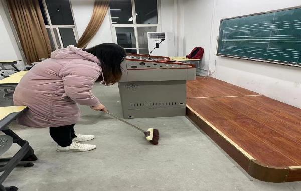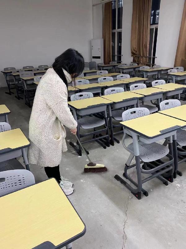教室是大家日常学习生活不可或缺的地方之一,为了让同学们能够在更整洁干净的教室中学习,志愿者携带着白色垃圾袋、笤帚簸箕等清洁工具在部分公共教室和专业琴房进行清洁活动。大家秉持着不怕脏、不怕累的服务精神,对各自负责的区域进行清洁。