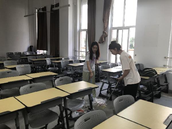 活动开始,带队的志愿者负责人就清扫区域进行工作划分,分发清扫工具。组织同学们对校园各个角落卫生进行精心打扫。