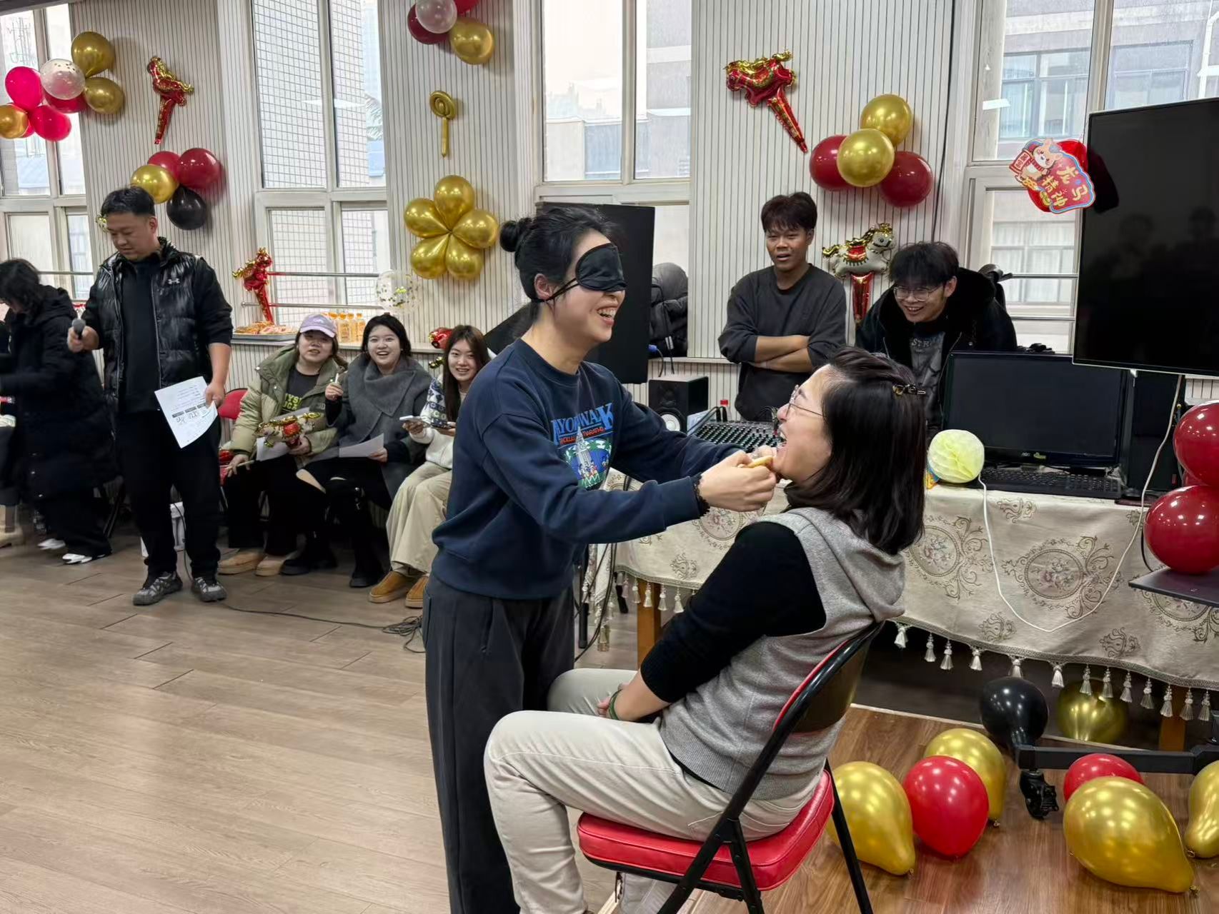 活动现场暖意涌动、热闹纷呈。“趣味蹲蹲乐”趣味十足,考验着教职工的临场反应,满溢着欢声笑语;“盲忙欢乐送”妙趣横生,一个个生动的瞬间,引得现场喝彩不断;“旋律侦察兵”环节尽显公司专业特色,老师们凭借扎实的专业功底与敏锐的音乐感知力,快速辨识旋律片段、精准完成作答,充分展现了音乐教育工作者的专业素养;“戏精比划秀”将整场活动氛围推向顶点,夸张传神的肢体演绎与天马行空的脑洞猜测精彩碰撞,笑点频出、欢乐满场。
