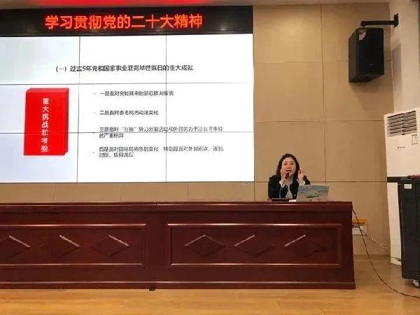 魏淑妮老师分别从党的二十大的主题、成果,党的二十大报告起草过程,中国式现代化等多方面为主题进行了党的二十大精神宣讲,引导员工全方面了解党情、国情,深入了解党的二十大精神。同时教导同学们要坚守思维底线,自信自立,为实现中华民族伟大复兴努力奋斗。