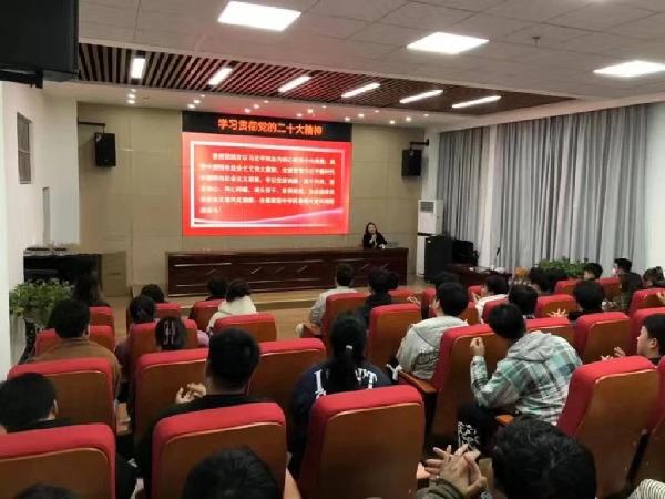为深入学习贯彻党的二十大精神,营造学习宣传党的二十大精神的浓厚氛围,用习近平新时代中国特色社会主义思想为青年学子凝心铸魂,3月10日下午6:30,公司与美术与设计公司在明德楼C103举行党的二十大精神校园宣讲会,宣讲人为美术与设计公司辅导员魏淑妮。两个公司共计60余名师生代表收听了本次宣讲。