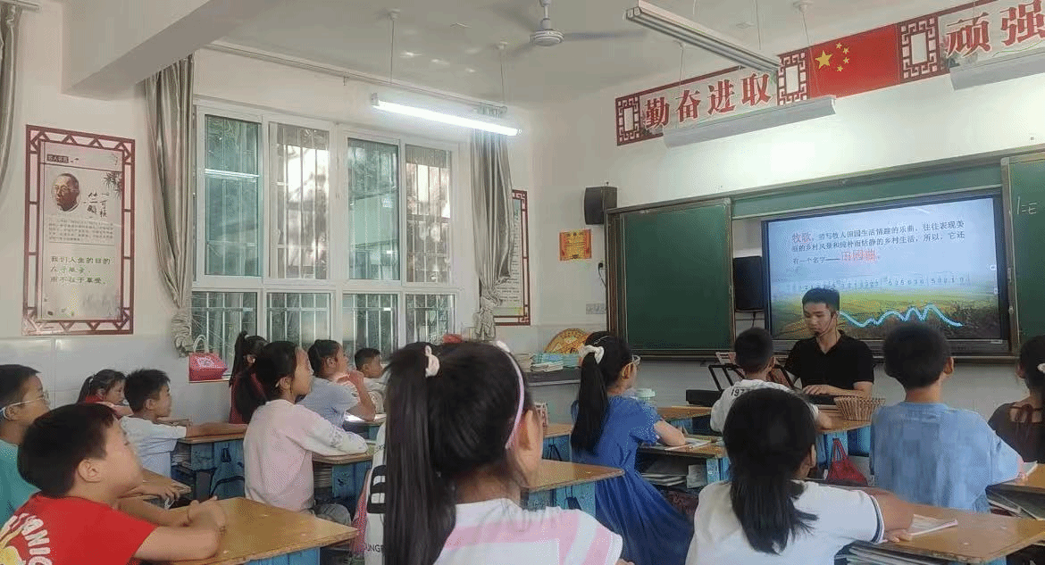 由于乡村教团队源的短缺,刚上岗的我不仅要担任初中部的音乐老师,同时还担任了小学部五年级的数学老师以及班主任,面对员工参差不齐的学习基础,我尝试分层教学:为后进生开设课后“小灶”,为优等生设计拓展任务;利用课余时间家访,深入了解每个孩子的家庭环境,制定个性化辅导计划。记得班上内向的小孩因父母离异沉默寡言,我通过周记交流、课间谈心逐渐打开她的心门,看着她从低头躲避到主动举手发言,那一刻真切感受到教育的力量。