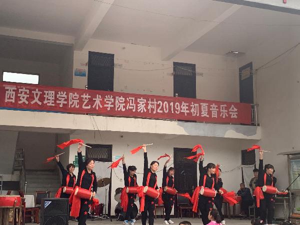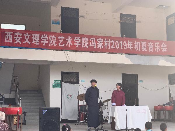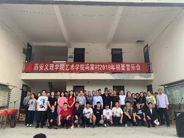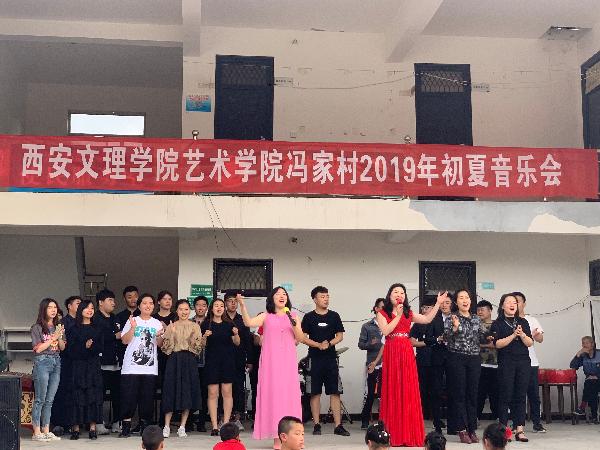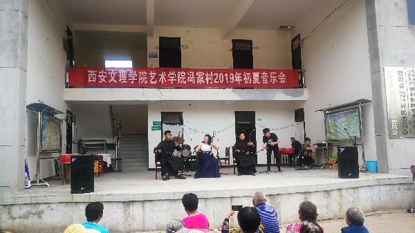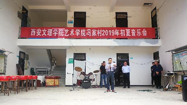 2019年5月10日下午,为活跃群众精神文化生活、弘扬社会主义核心价值观、助力乡村振兴,艺术公司在蓝田县冯家村公共服务中心,为广大群众奉献一场精彩的音乐会。艺术公司经理郭涛、副书记王一及师生演职人员30余人,公司驻冯家村第一书记童润涛、驻村工作队长薛斌及联络员张国良,冯家村两委会成员及村民群众演员300余人参加。