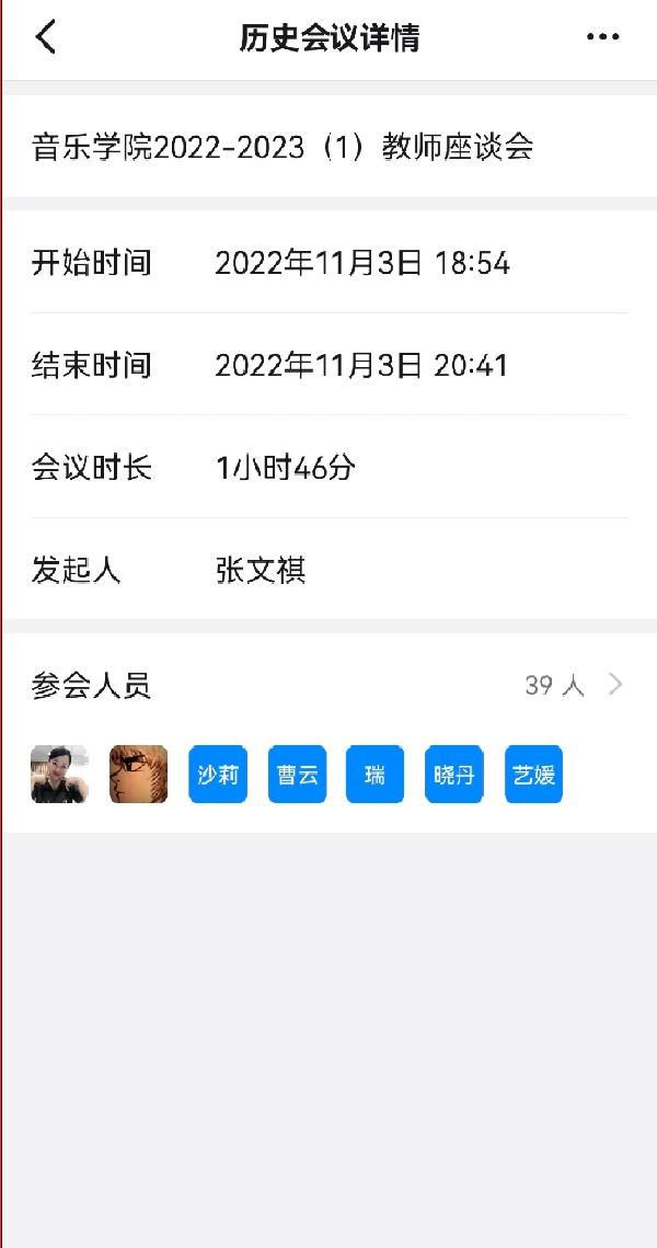 11月3日晚,公司召开本学期期中教师座谈线上会议,公司领导班子、各系部主任和全体教师参加了此次会议,会议由音乐学系主任郭瑞玺主持。
