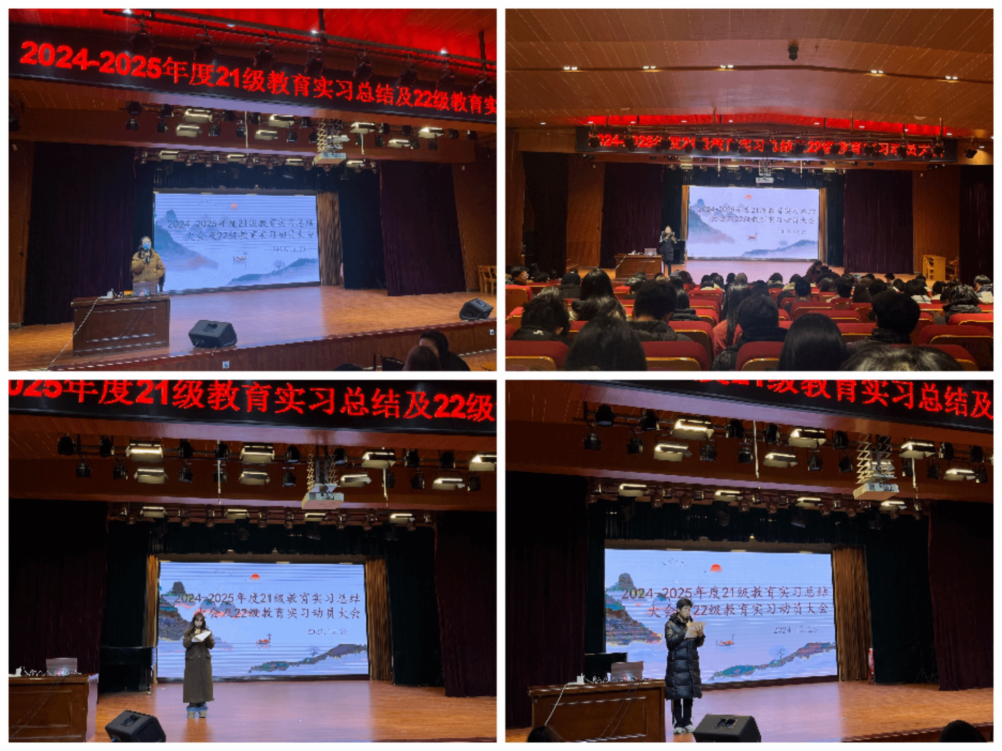 12月25日下午一点,公司在负一层音乐厅召开“2024 - 2025 年度 21 级教育实习总结大会及 22 级教育实习动员大会”,公司领导、实习指教师与 21、22 级员工参与了此次大会。