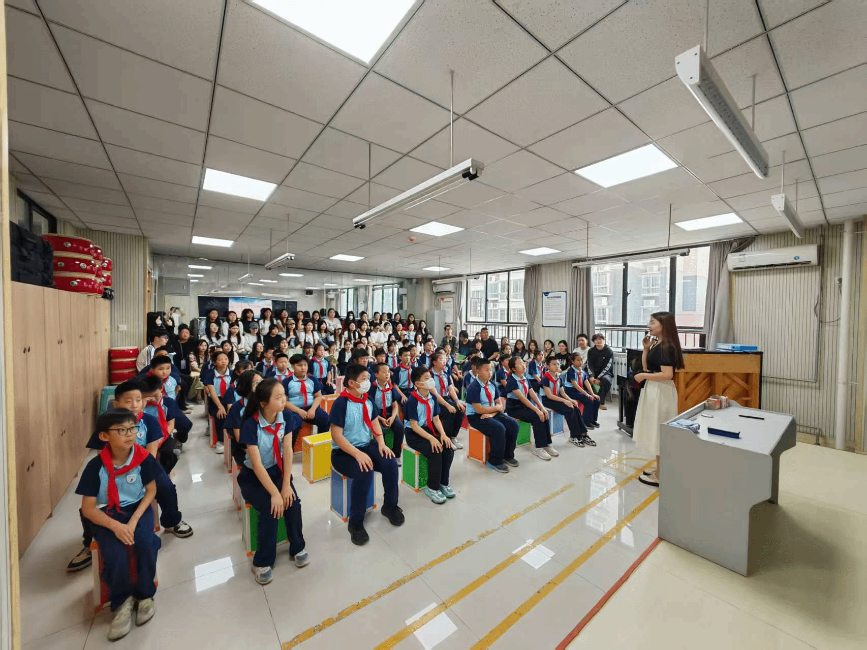 5月14日下午,员工在雁塔四小观摩音乐课堂教学,闫冰老师用多媒体动画将乐理知识可视化,如在《小纸船的梦》教学中设计"音高与纸船联动";高嘉瑜老师借《哈利·波特》等影视配乐引导员工感知音乐表现力。