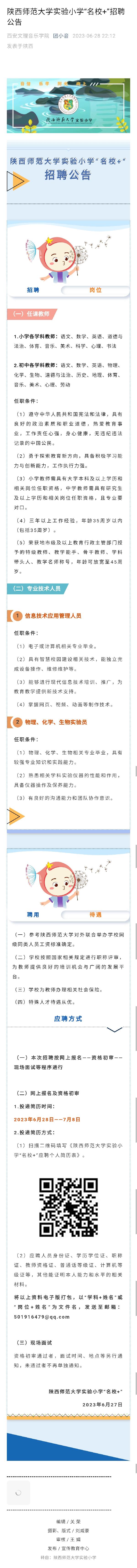 陕西师范大学实验小学“名校+”招聘公告