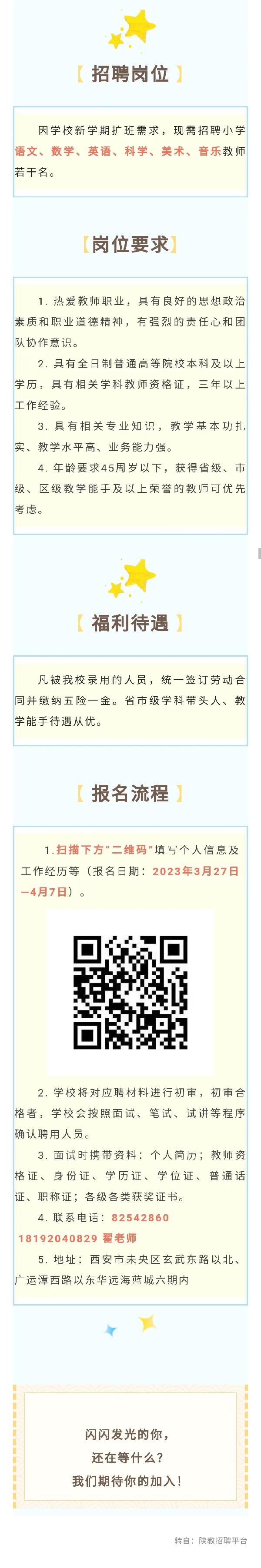 西安浐灞阳光海蓝小学招聘公告