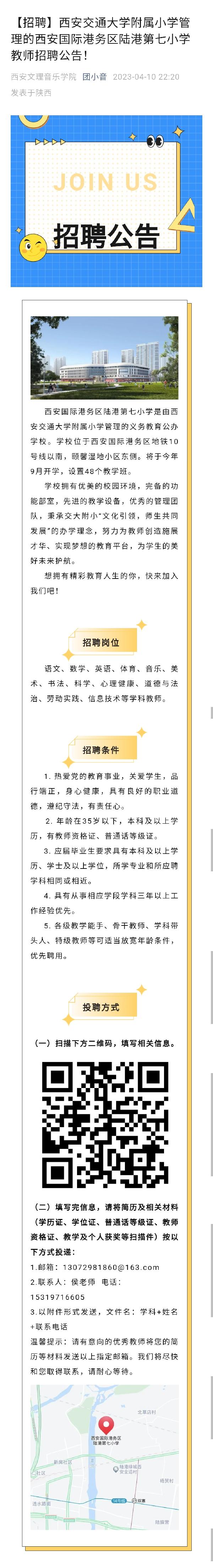 西安国际港务区陆港第七小学教师招聘