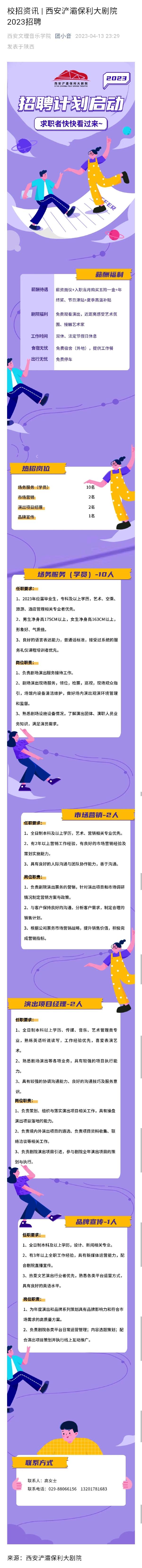 西安浐灞保利大剧院2023招聘