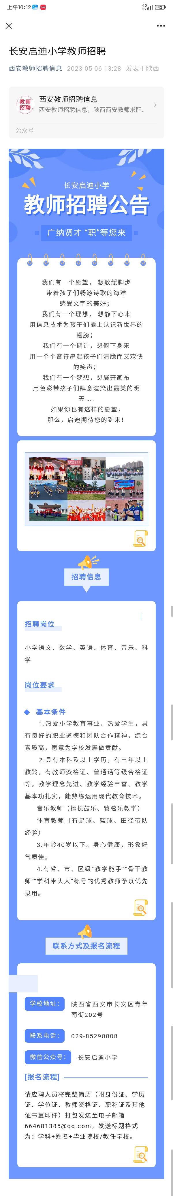 长安启迪小学教师招聘