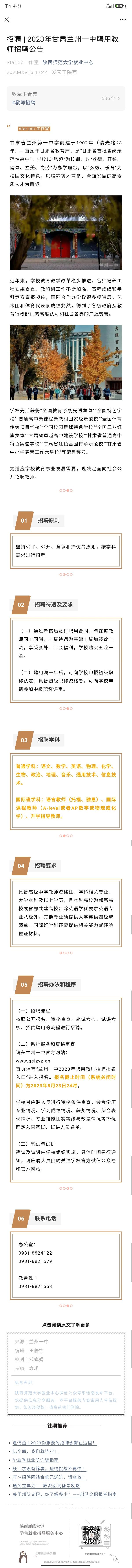 2023年甘肃兰州一中教师招聘